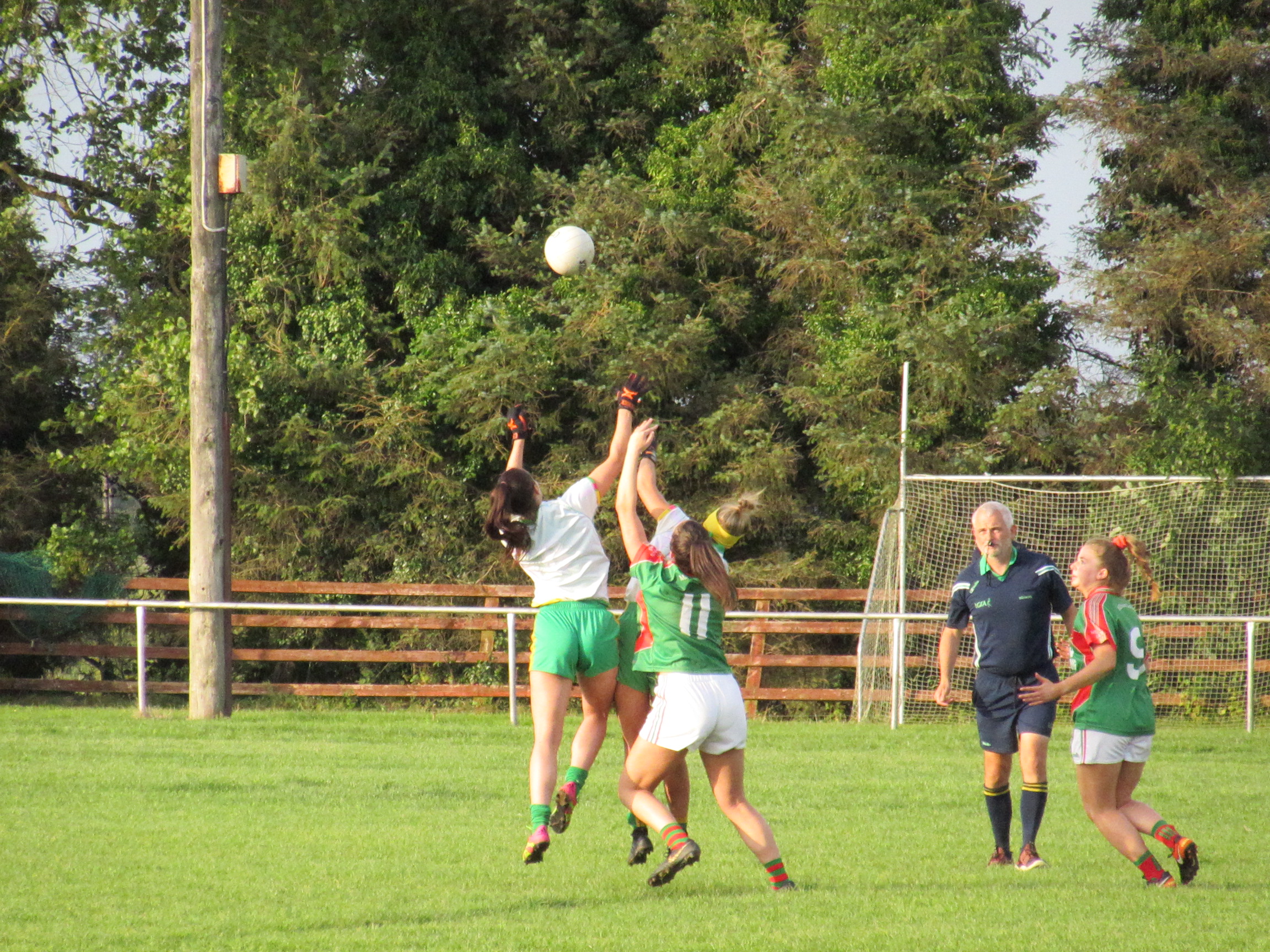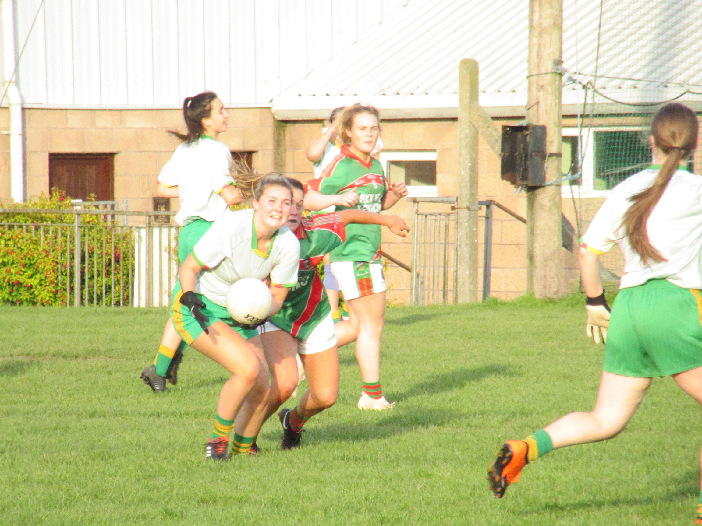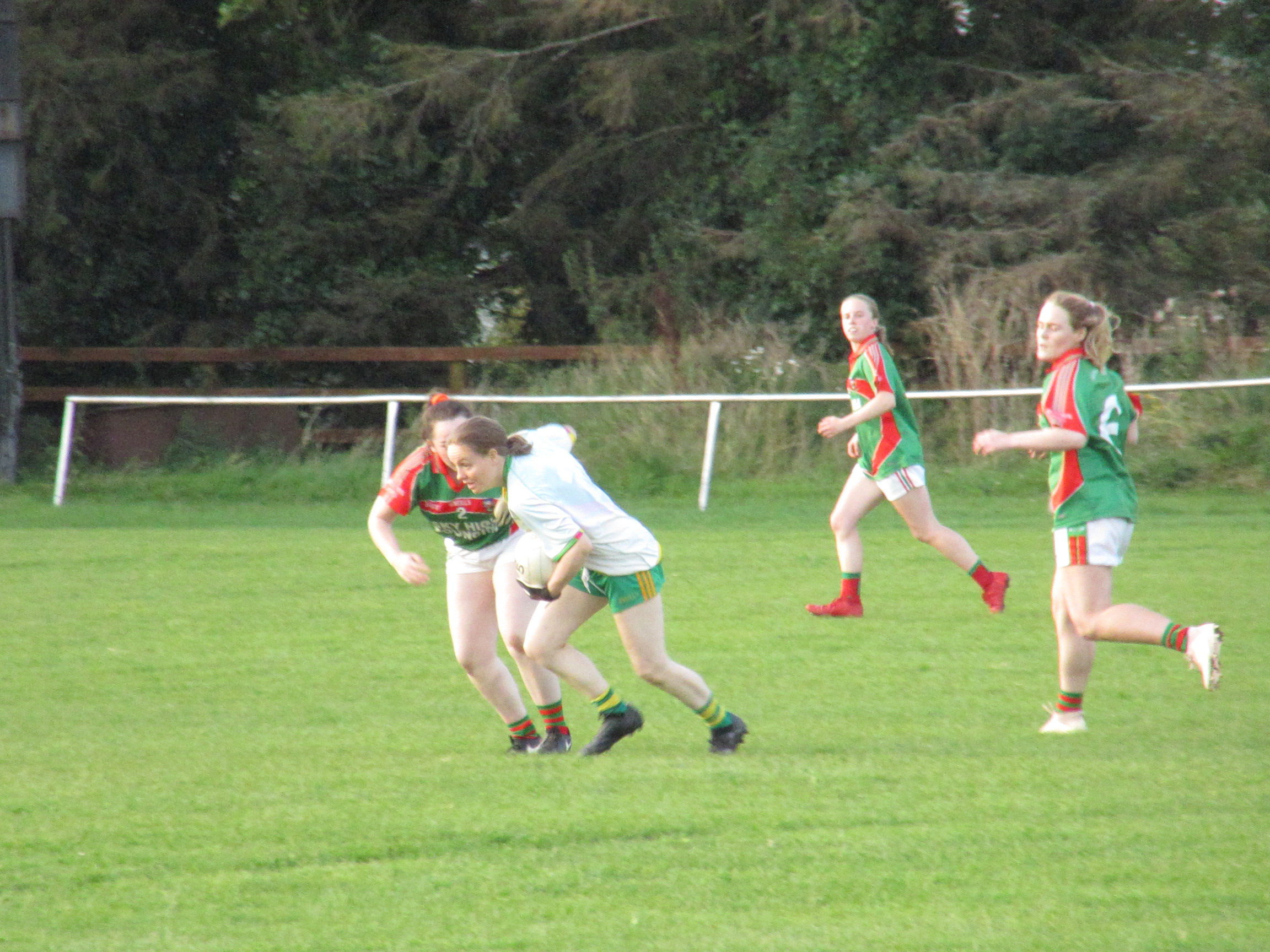 Second half Milltown came out fighting putting two points over the bar within minutes. Ballymore replied with a point but Milltown then started to stretch their lead by scoring five more points. With about ten minutes to go Ballymore’s Tara Winder scored a blinder of a goal within minutes of stepping onto the pitch, leaving Milltown one point ahead. Unfortunately, Milltown started to pull away and managed to put another three points over. Ballymore had a few more attempts but it wasn’t to be their night. The girls gave it their all but Milltown proved too strong for them in the end.