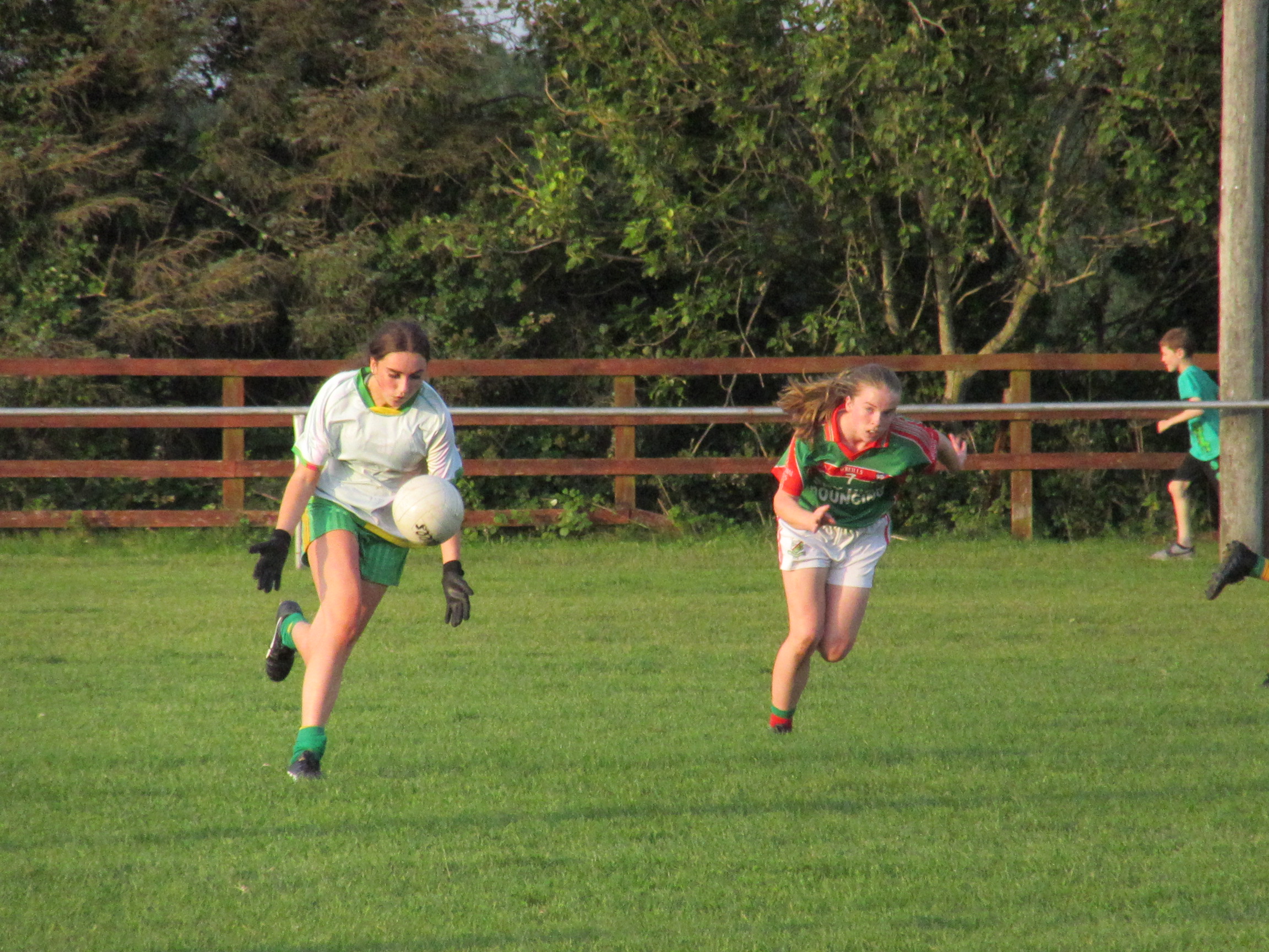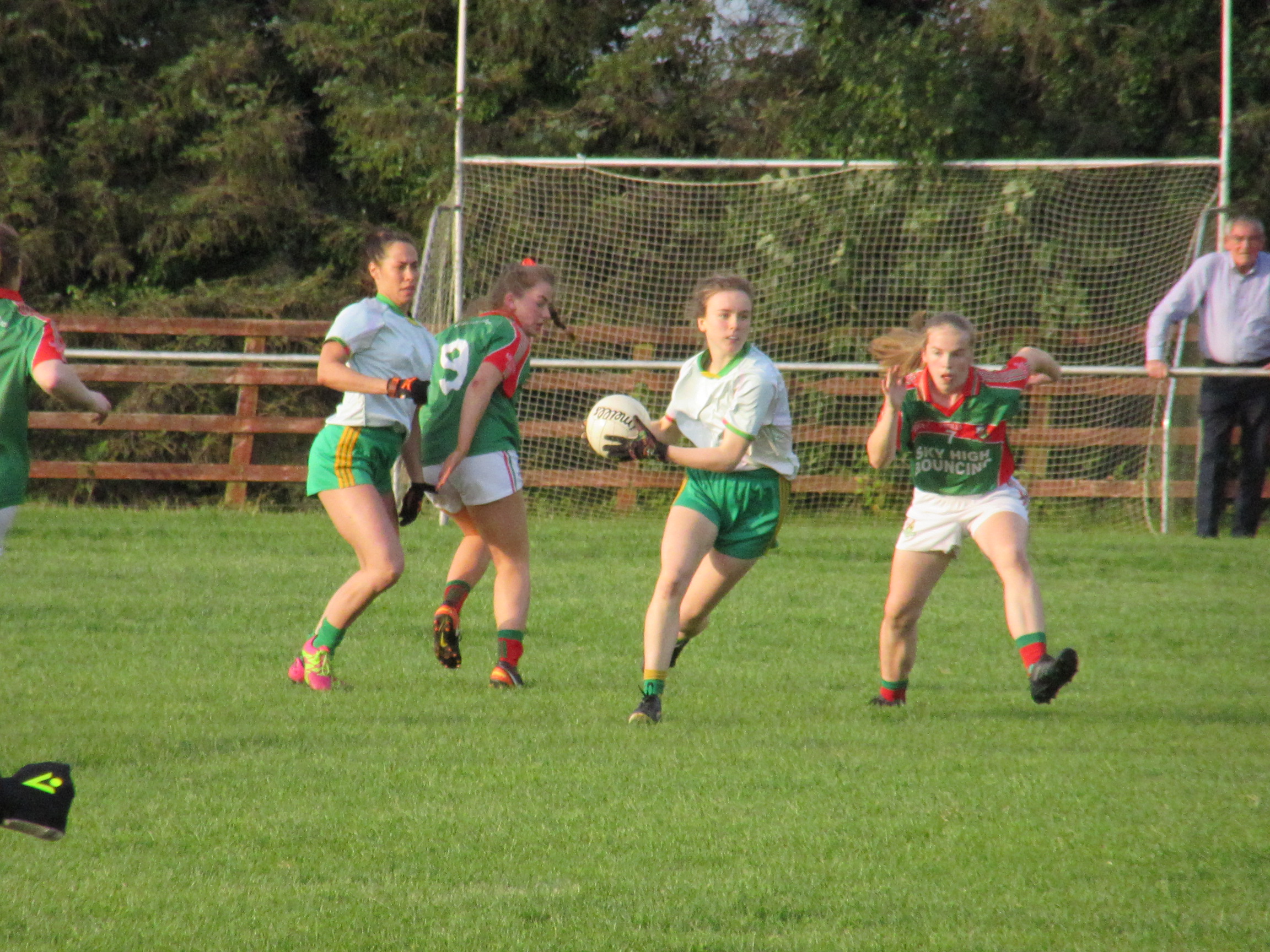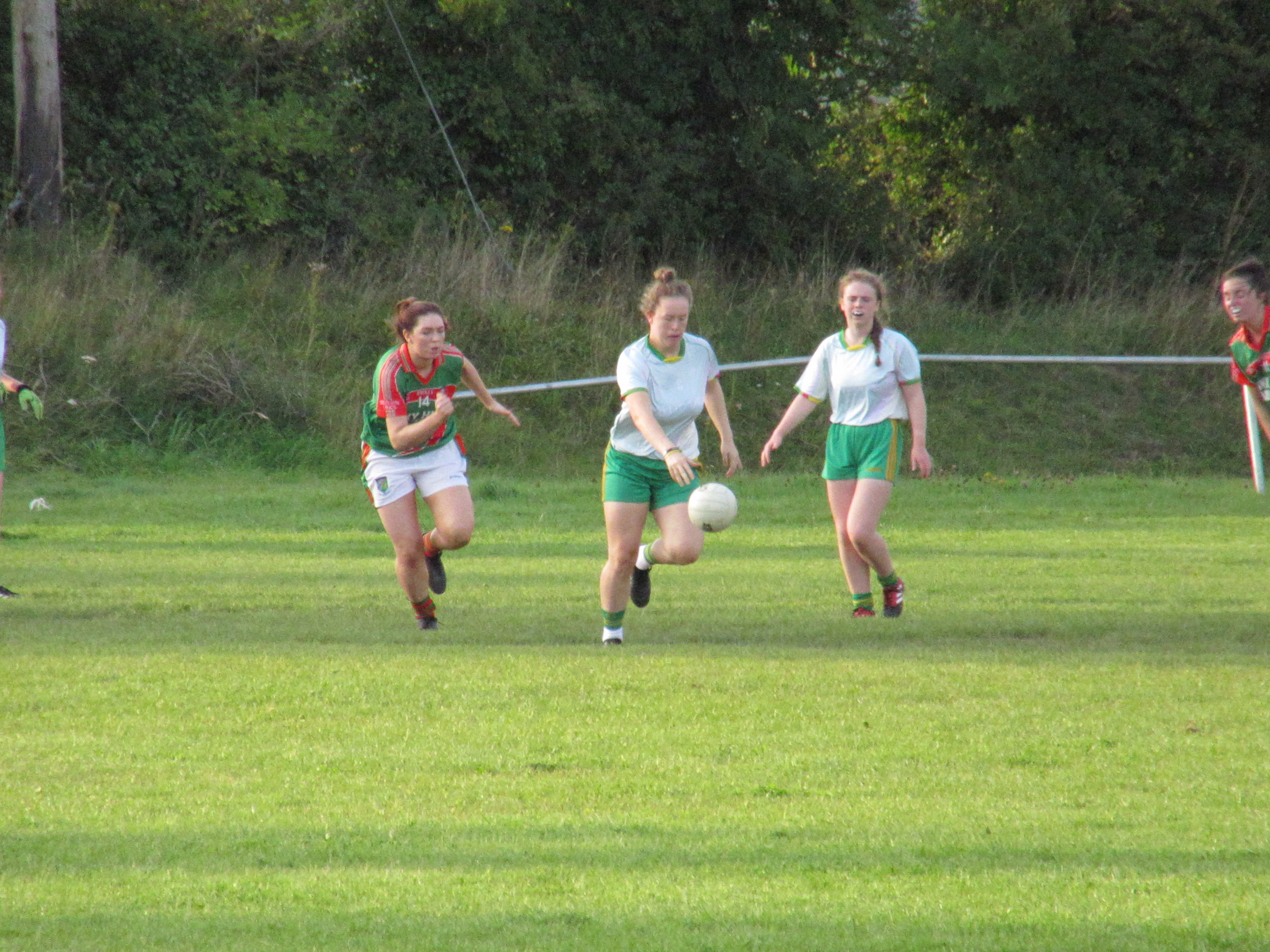 Second half Milltown came out fighting putting two points over the bar within minutes. Ballymore replied with a point but Milltown then started to stretch their lead by scoring five more points. With about ten minutes to go Ballymore’s Tara Winder scored a blinder of a goal within minutes of stepping onto the pitch, leaving Milltown one point ahead. Unfortunately, Milltown started to pull away and managed to put another three points over. Ballymore had a few more attempts but it wasn’t to be their night. The girls gave it their all but Milltown proved too strong for them in the end.