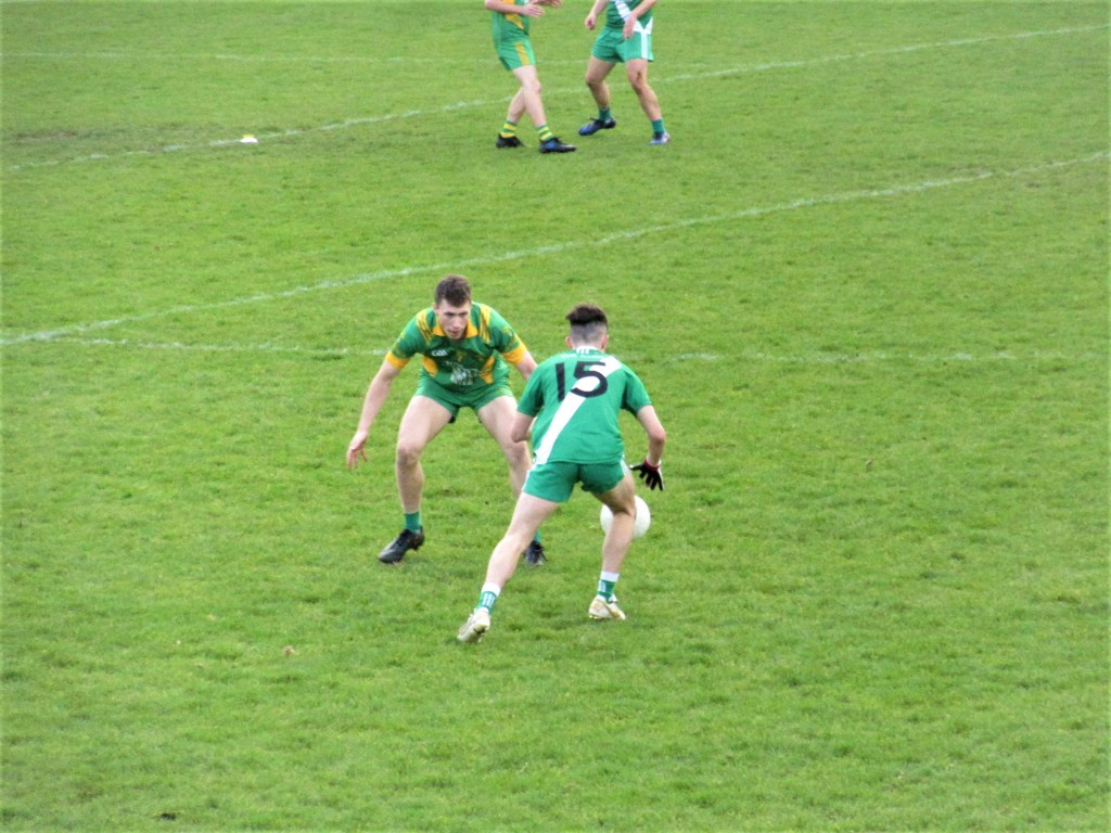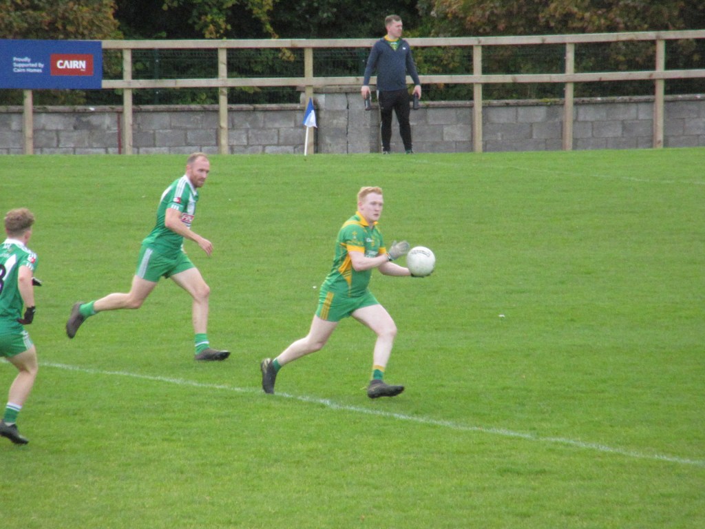 Sarfields were first off the mark with two points in the first 5mins. BME were finding their feet when Stephen Dwyer secured the first score for BME. It was point for point between the two teams before Tadhg Barrett hit the back of the net. Scores from Simon Murphy, Micheal Stewart Byrne and Niall Murphy gave BME a 10 point lead at the half time whistle. BME 2-11; Sarsfields 1-04
