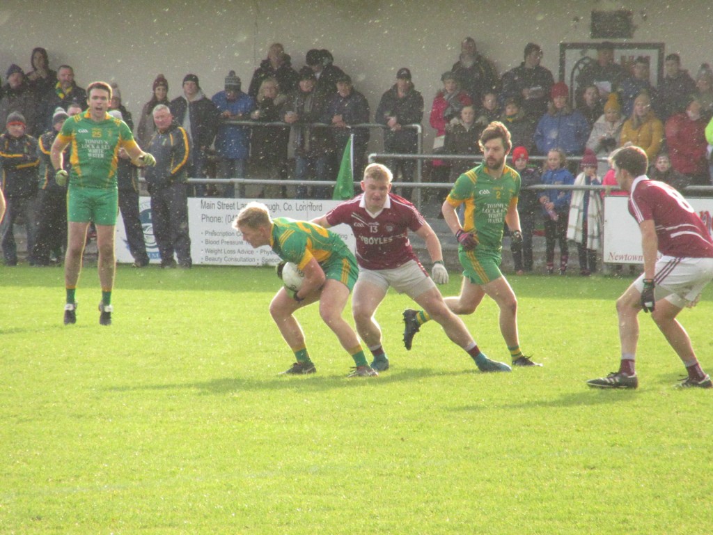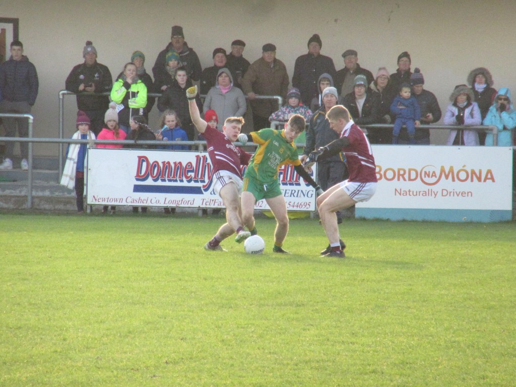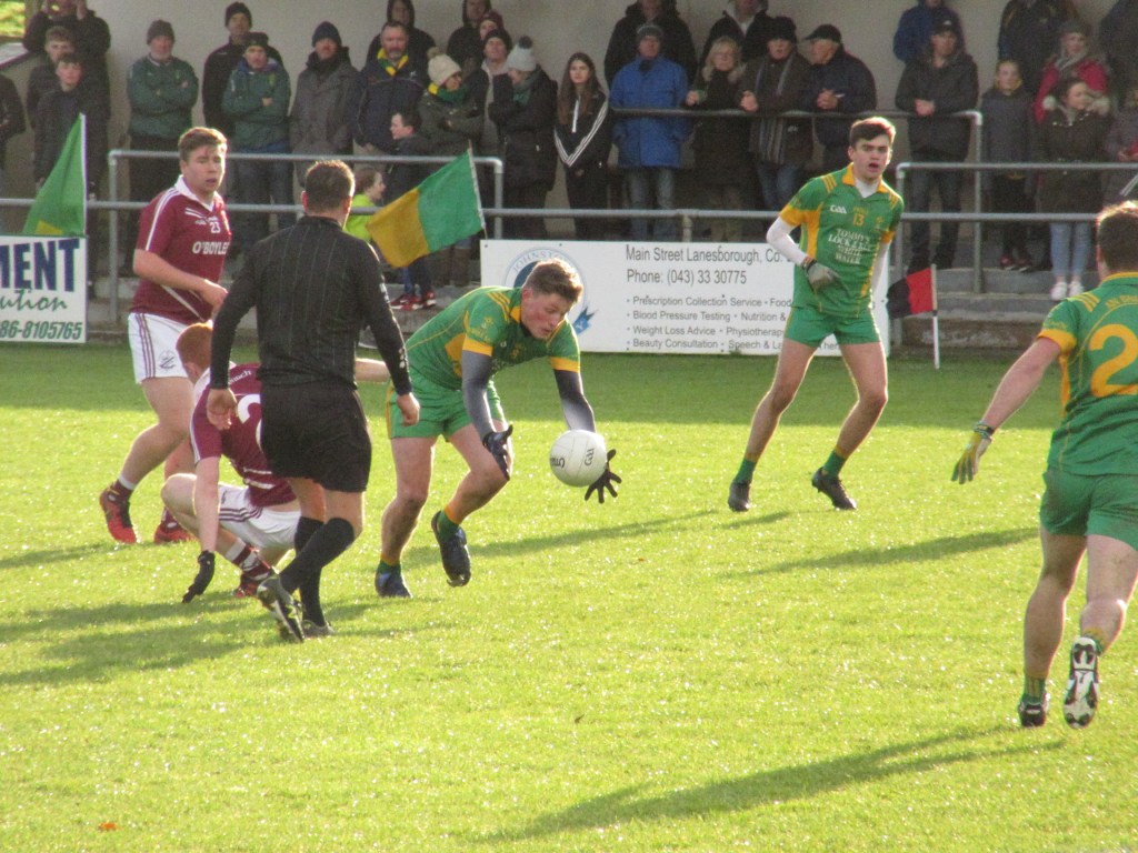 All roads lead to Newtowncashel Co. Longford on Saturday 9th November. A bitterly cold day with a strong wind. Kenagh’s pitch was in perfect condition despite the weeks weather. BME took advantage of the strong wind in the first half scoring four points in a row from Niall Murphy, Tadhg Grace, Shane Barrett and Simon Murphy. Kenagh soon added to the scoreboard. At half time BME had a good cushion of a 12 point lead. BME 0-14; Kenagh 0-02.