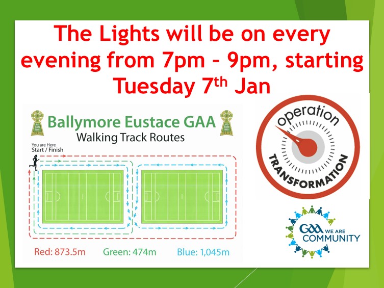 January 15, 2020August 12, 2020 Ballymore Eustace GAA Club Monday – Sunday 7pm -9pm Operation Transformation 2020 Share this: Share on X (Opens in new window) X Share on Facebook (Opens in new window) Facebook Like Loading... Related