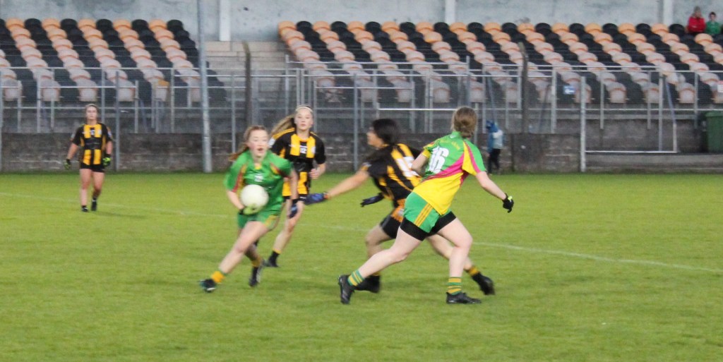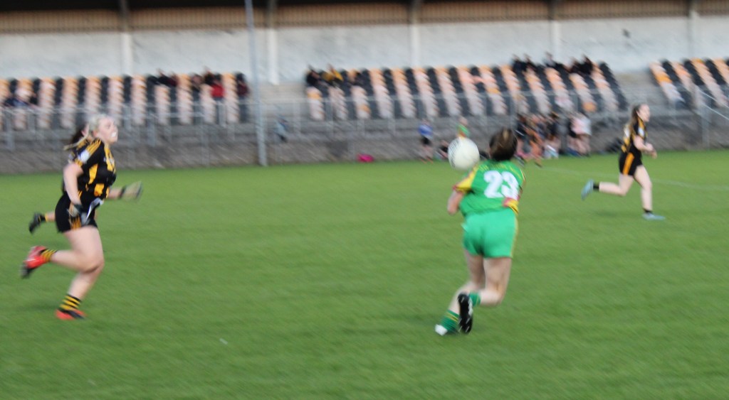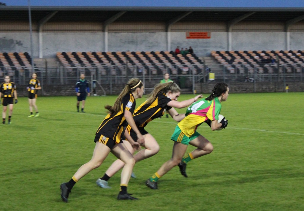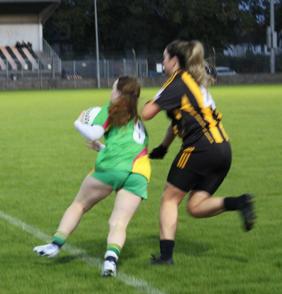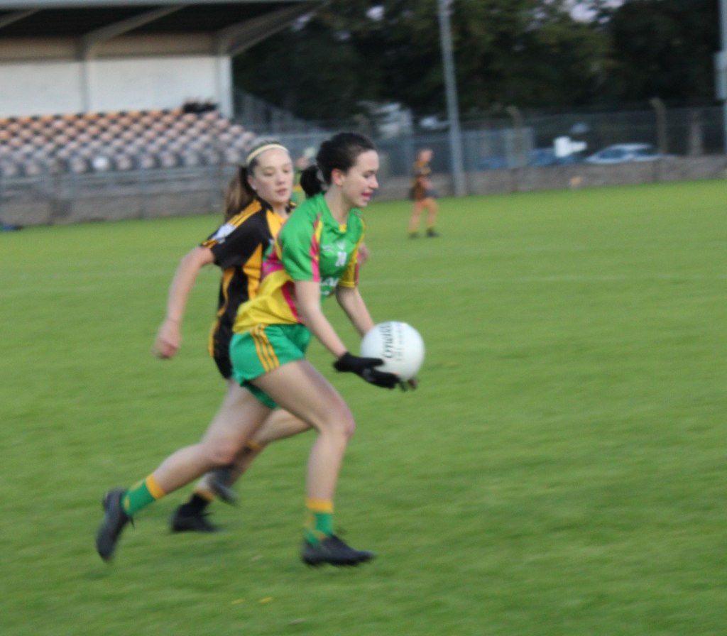 Ballymore were straight into the third quarter with great ball work between Steph and Aibhe to score a point in the first minute. Towers scored another two before Laura brought them level again. Towers scored one more before a great goal from Amy Mahon and a final point from Aibhe going into the last quarter.