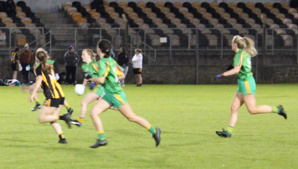 Heading into the final fifteen, Ballymore had a three-point lead, which Towers levelled up fairly quickly with a goal. The girls were to score another (1 – 04), which gave them a three-point lead again with about 7 minutes to go. However, Towers were to score their last point before their final score of the night, a goal, giving them a point lead and the win.