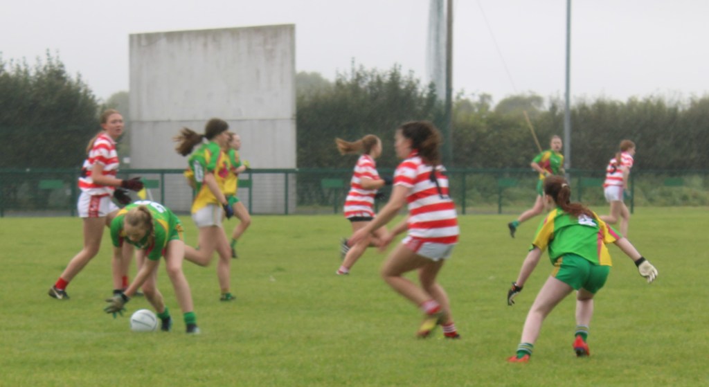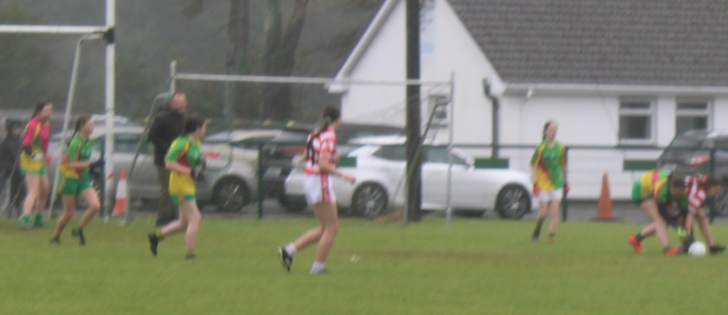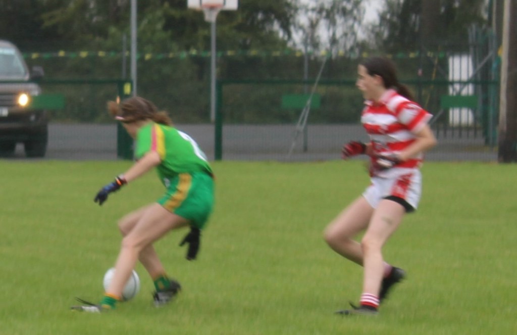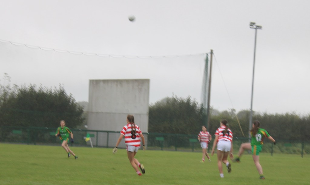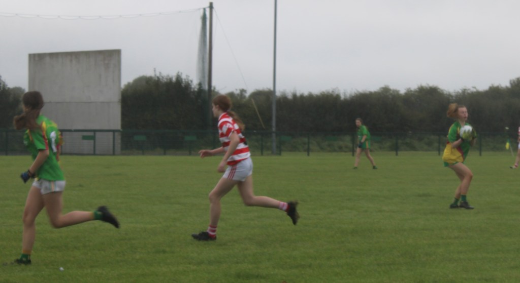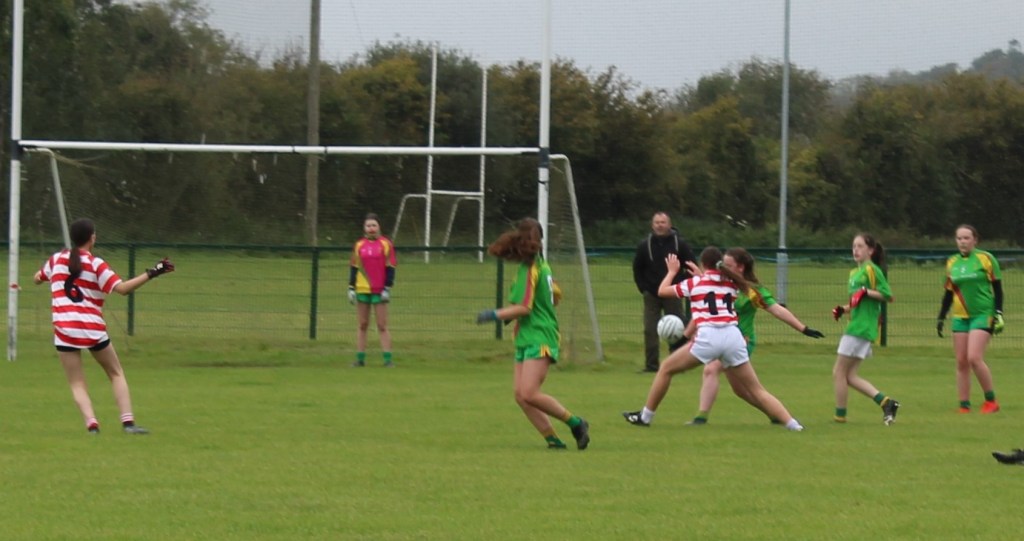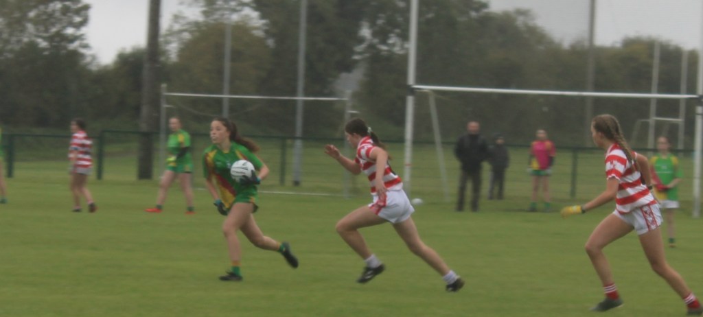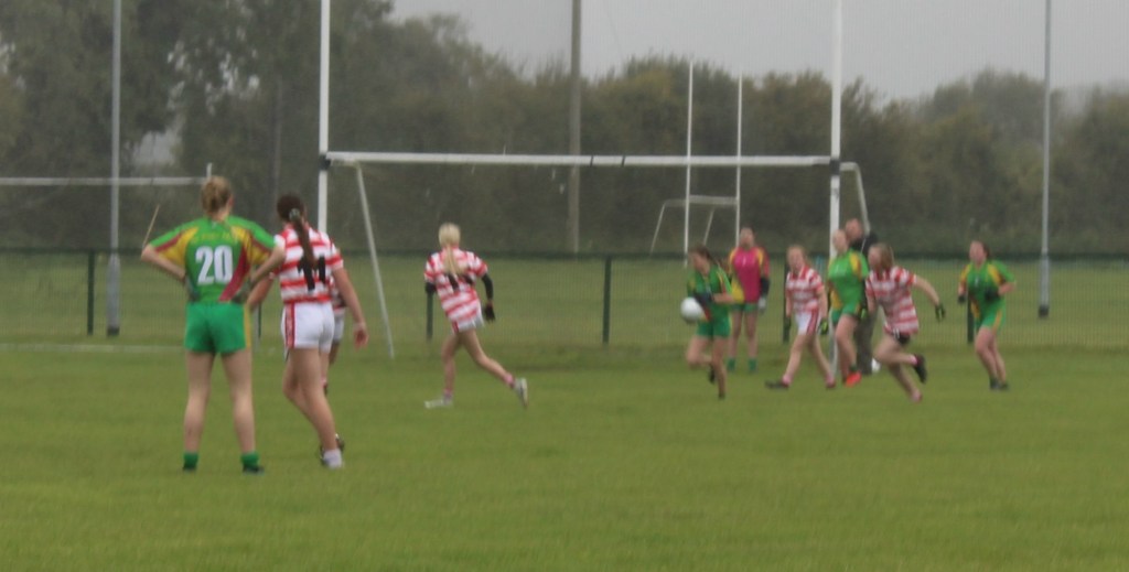Ballymore scored the first point from the throw in. Mayah Doyle scored her second point shortly after. A great block by Anna Flaherty and Eimear McCann, was scooped up by Grace Cowley and kicked outfield. Cappagh were to get their first point before Ballymore popped two more over. Cappagh got another (1 – 02) before the first water break giving them a one-point lead.
