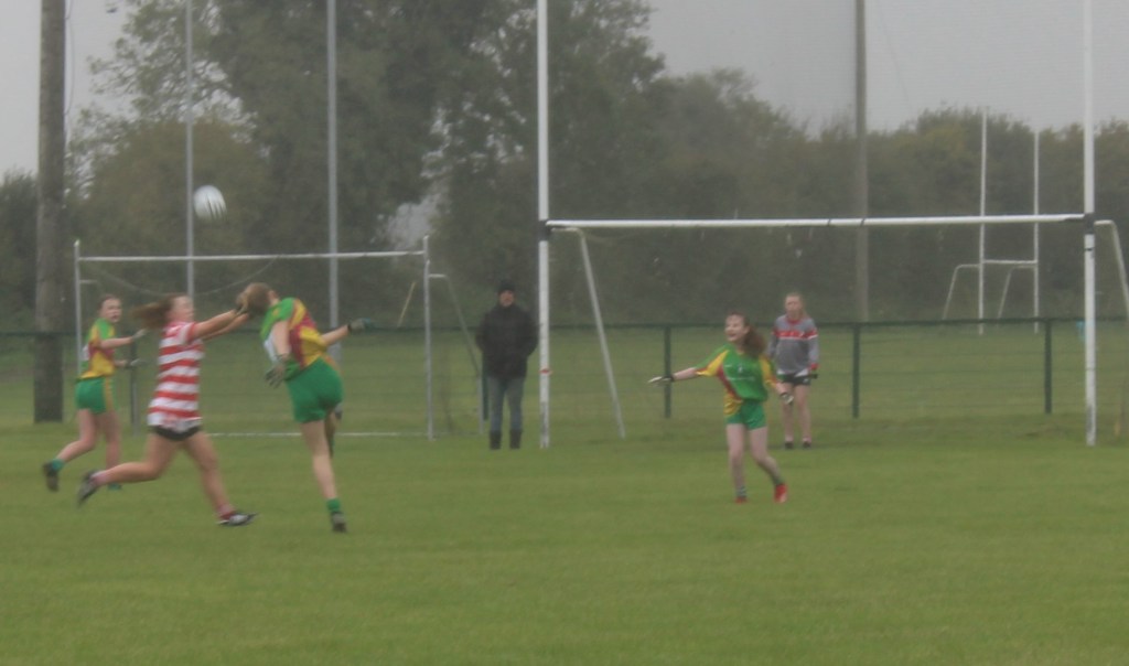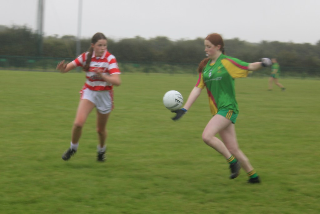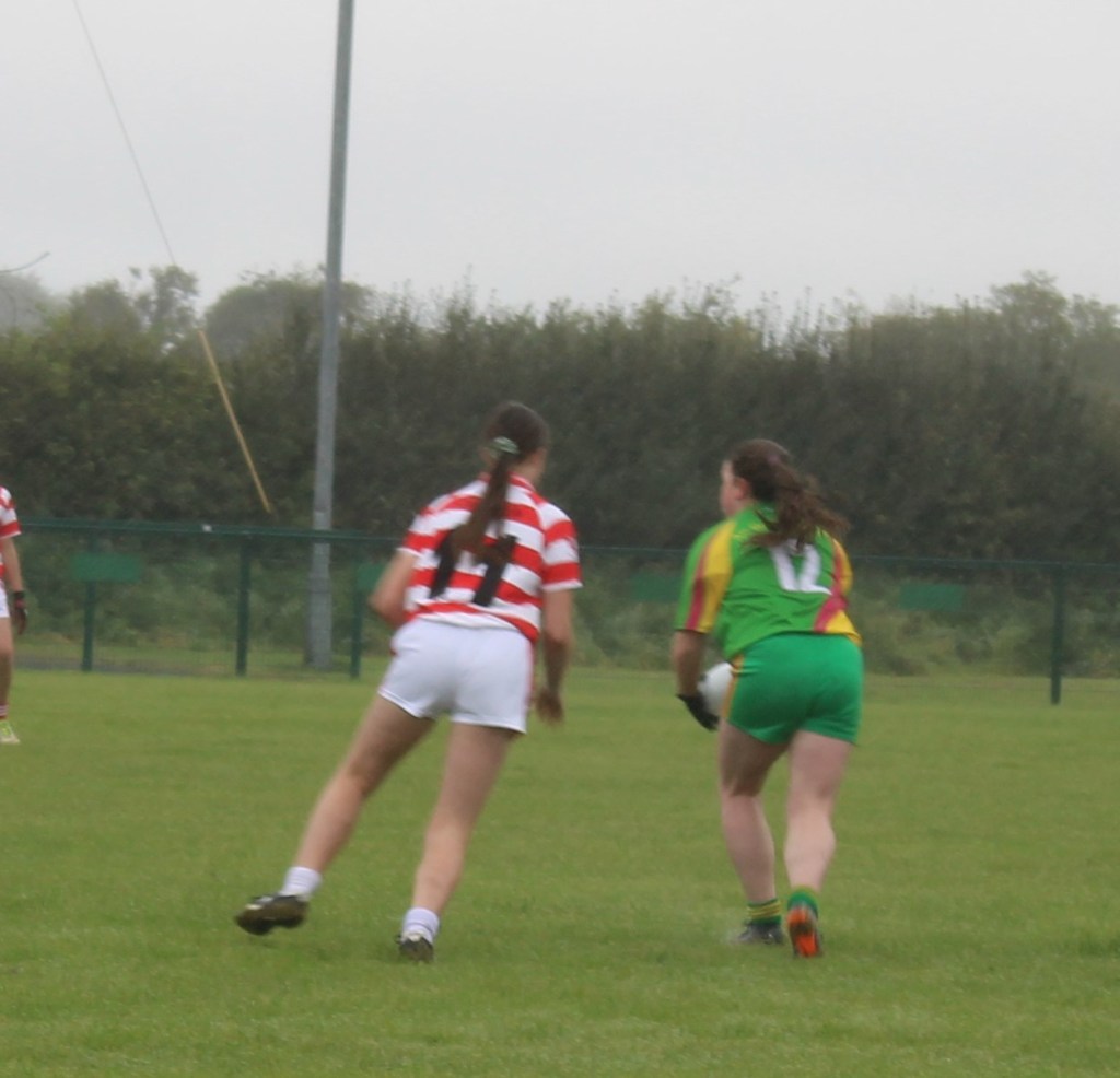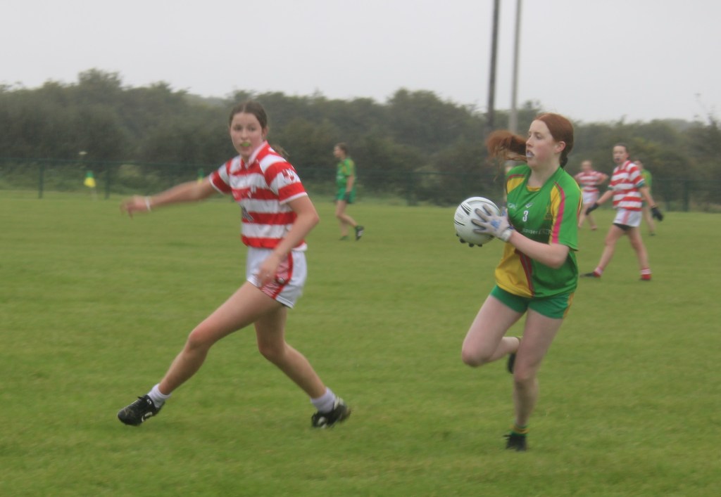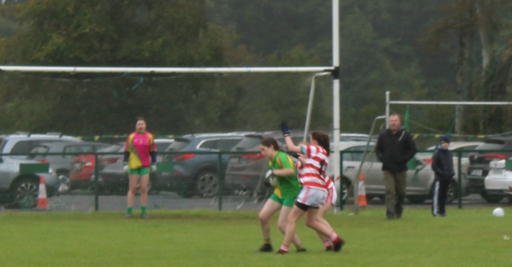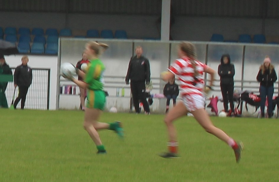 Ballymore scored the first point from the throw in. Mayah Doyle scored her second point shortly after. A great block by Anna Flaherty and Eimear McCann, was scooped up by Grace Cowley and kicked outfield. Cappagh were to get their first point before Ballymore popped two more over. Cappagh got another (1 – 02) before the first water break giving them a one-point lead.