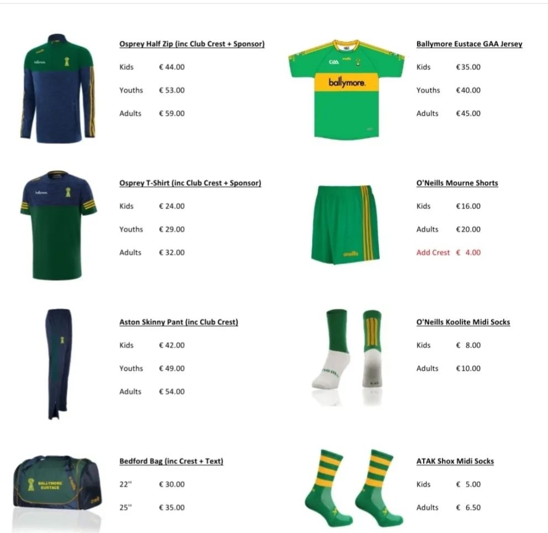 April 13, 2021July 12, 2022 Ballymore Eustace GAA Club BME GAA & LGFA Official Club Clothing Official Club Clothing Contact John Mulhall in Colgans (045) 889 471 Share this: Click to share on X (Opens in new window) X Click to share on Facebook (Opens in new window) Facebook Like Loading... Related