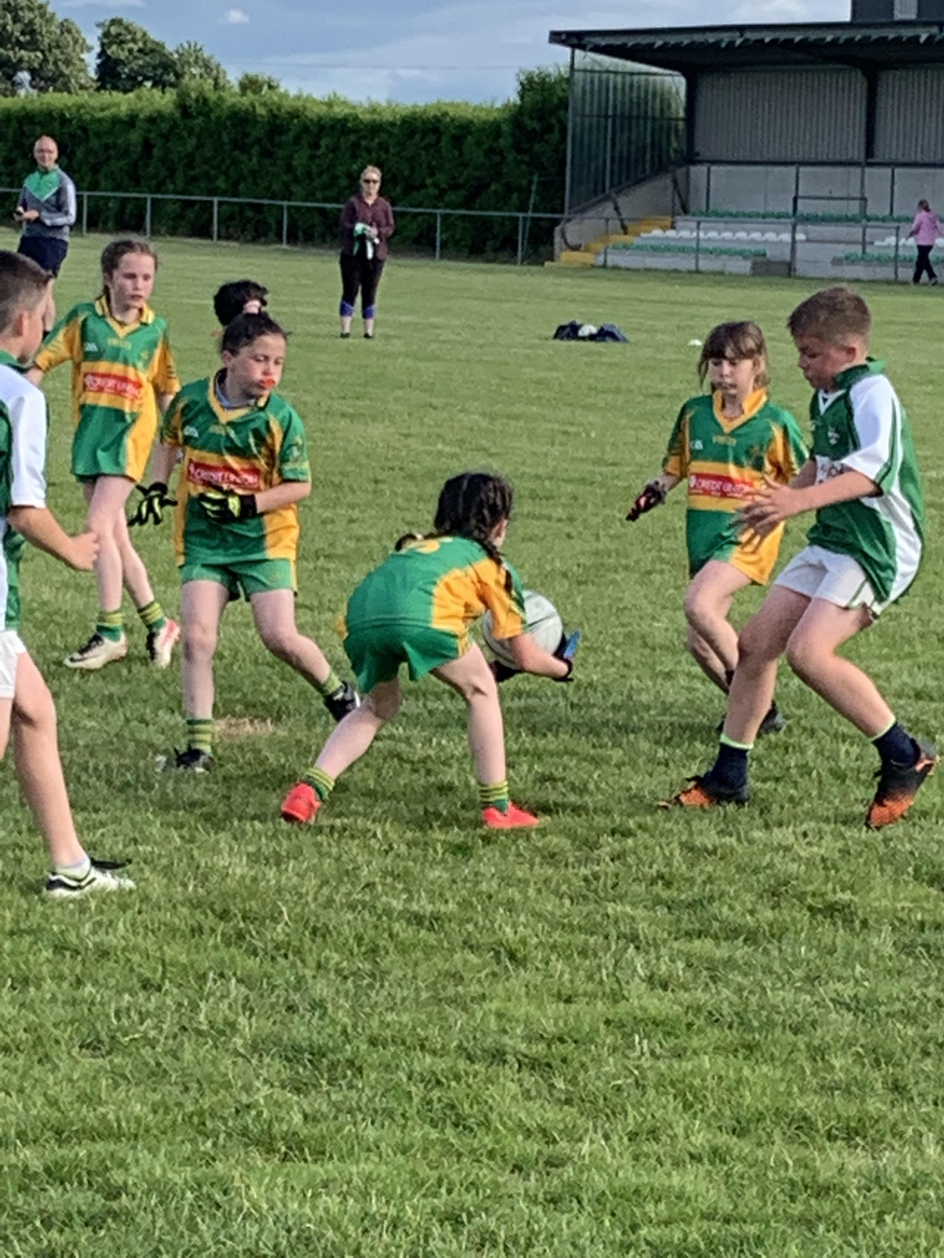 Ballymore travelled to Castlemitchell in great numbers for their first U10 game of the season. The hosts went on the attack first but were beaten back by a resolute Ballymore defence. There then followed a sustained period of Ballymore possession with a couple of great scores. The second half was a much more even affair with some really robust tackling keeping the scoring opportunities to a minimum.