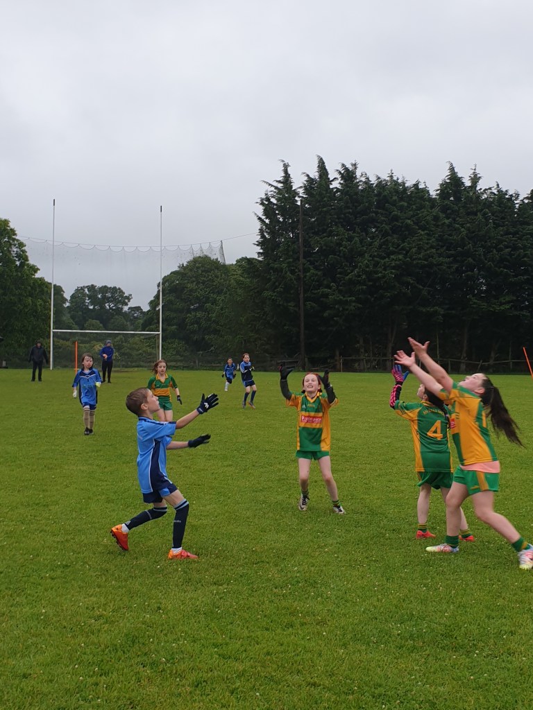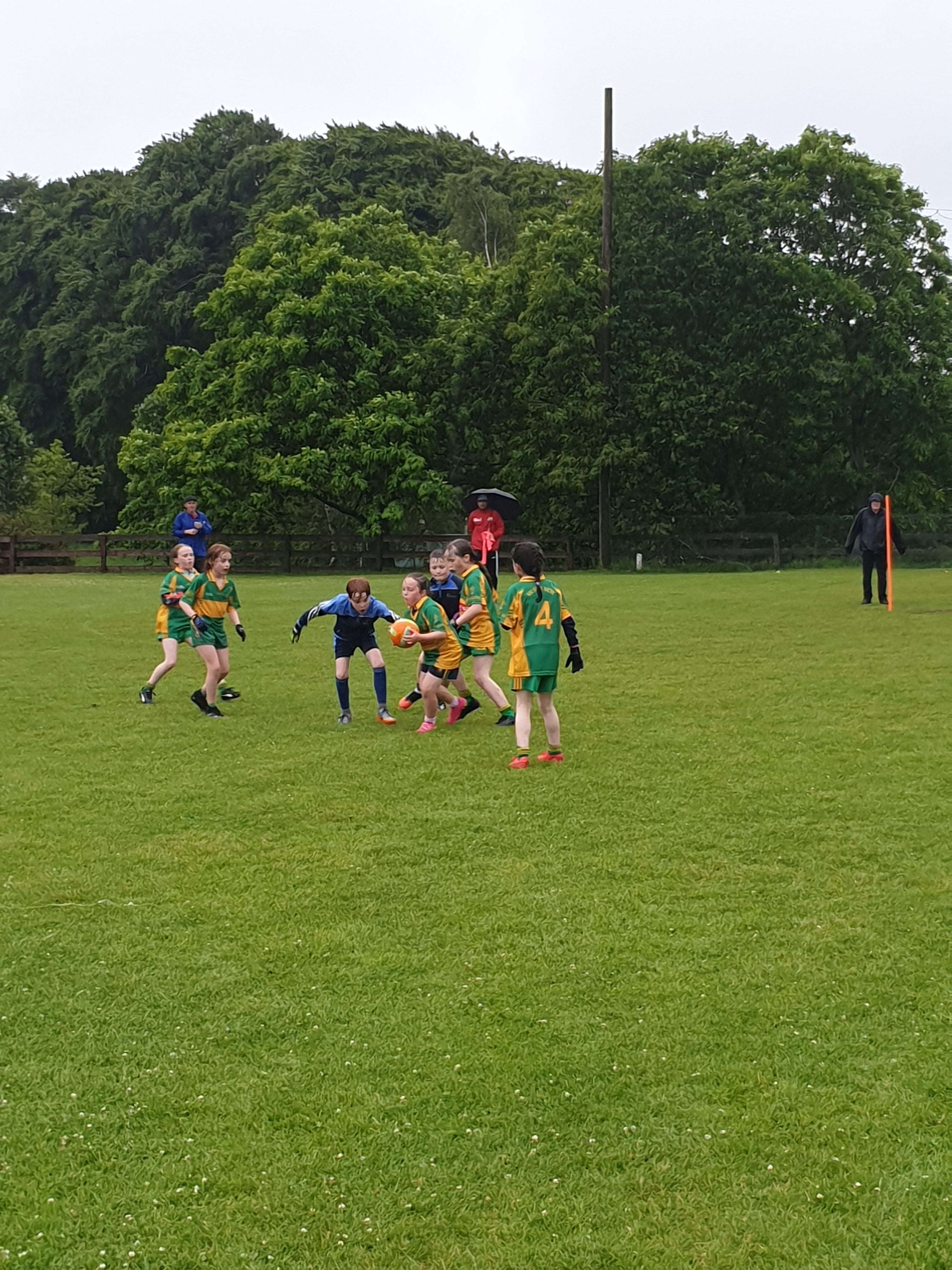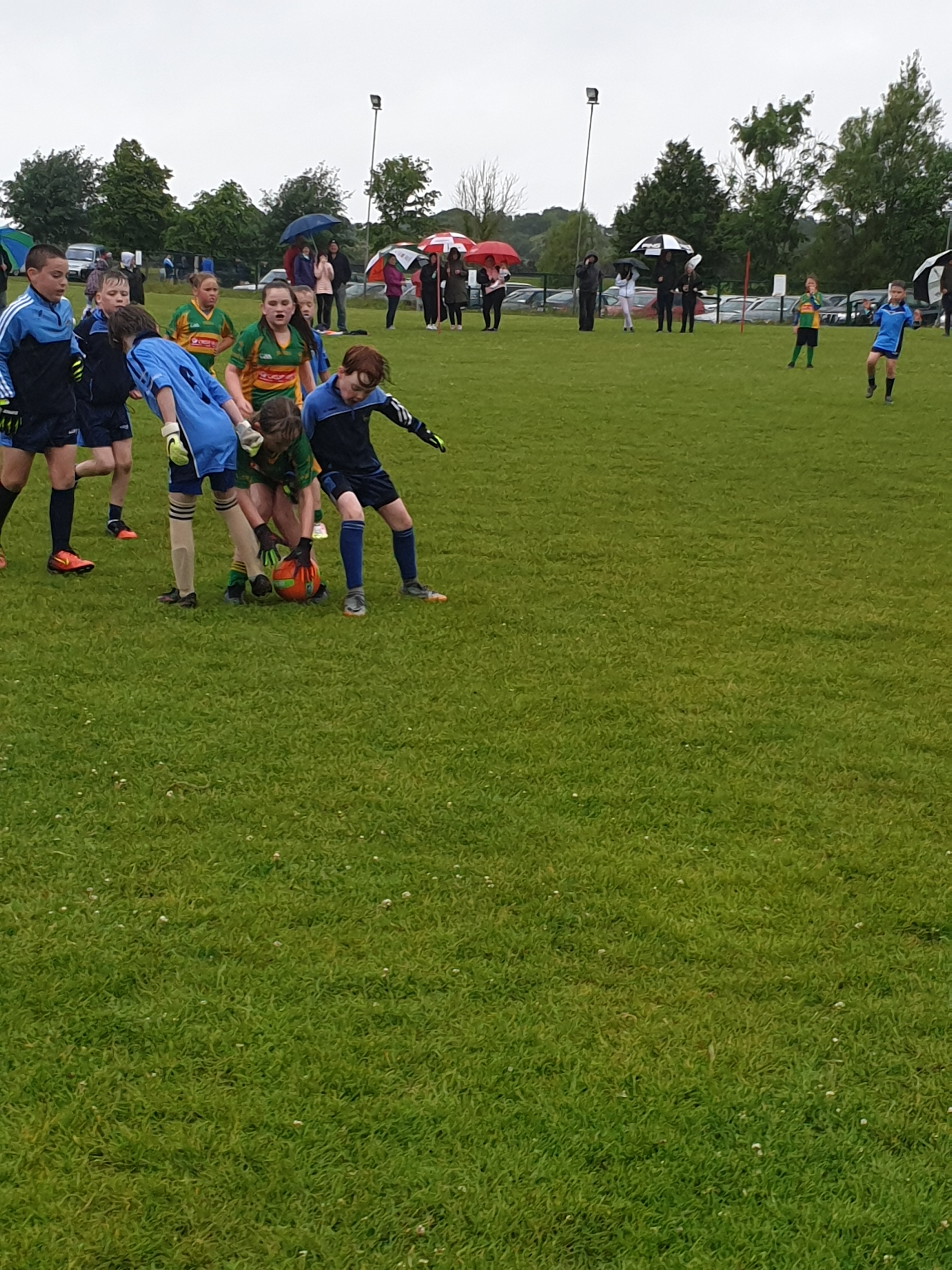 On a very wet and miserable evening Ballymore travelled to Athgarvan to play their U9 Southboard league game. Ballymore were straight out of the blocks with some nicely taken team scores. Athgarvan came into the game and had some spells on top but Ballymore dug deep and continue to show great skills and team play. Ballymore took their scores well as opportunities arose and finished the game strong. It what was a well spirited game played in very tough conditions. Well done to all involved.