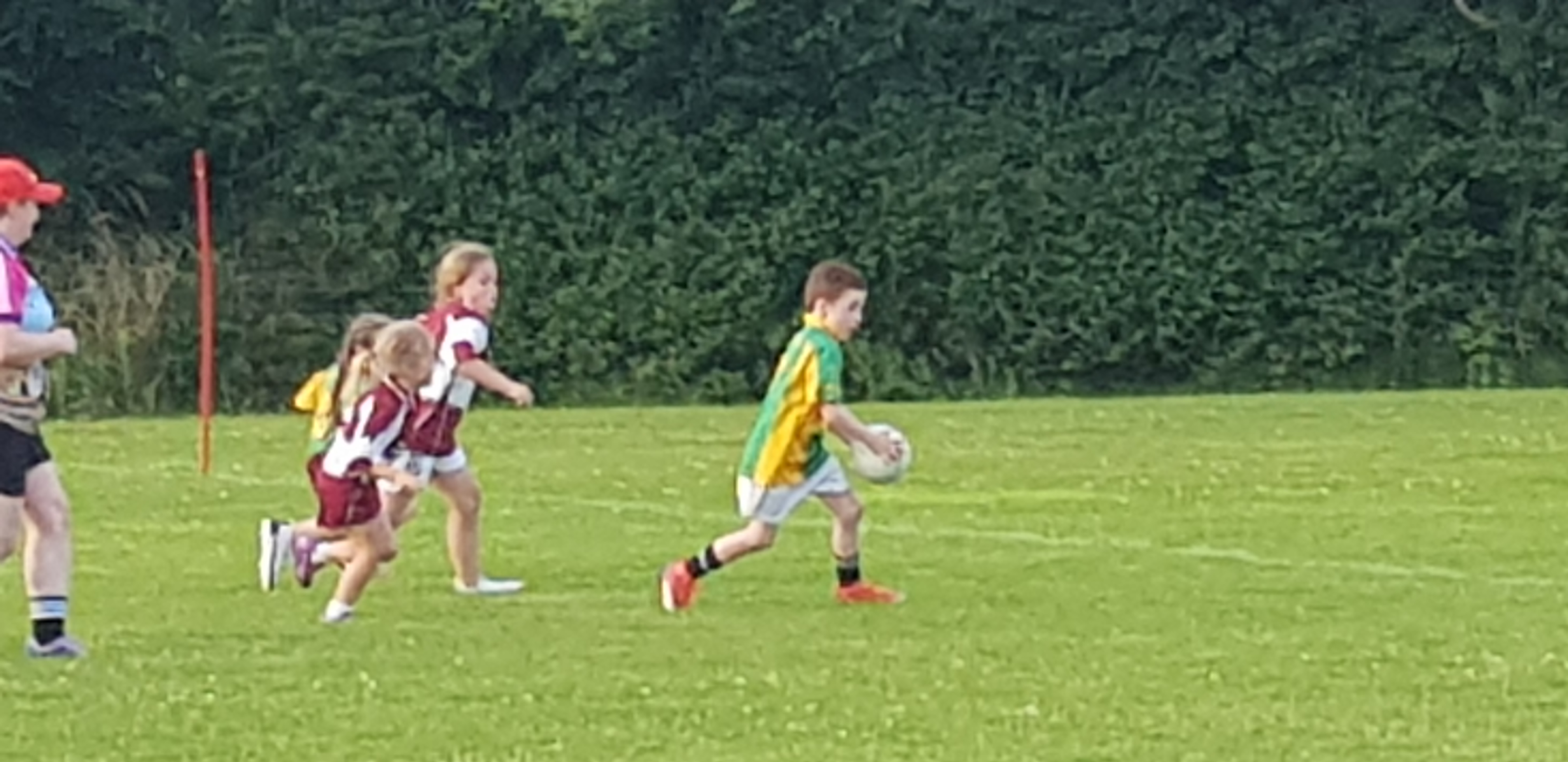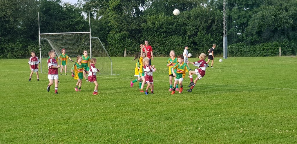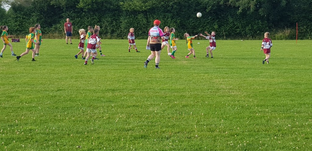 This was a full throttle performance from both teams despite the warm evening temperatures. The hosts got straight into the game with an early score but Ballymore hit back with a goal directly from a free kick.