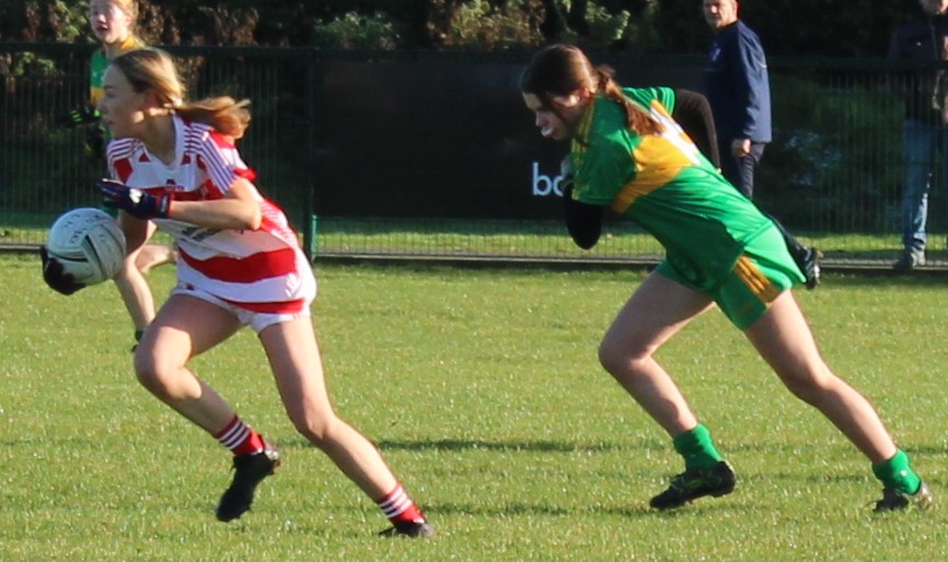 Cappagh came out fighting after half time and scored a goal and point and kept the BME girls off the scoreboard. Cappagh turned the tables on BME and converted their two-point deficit to a two-point lead.