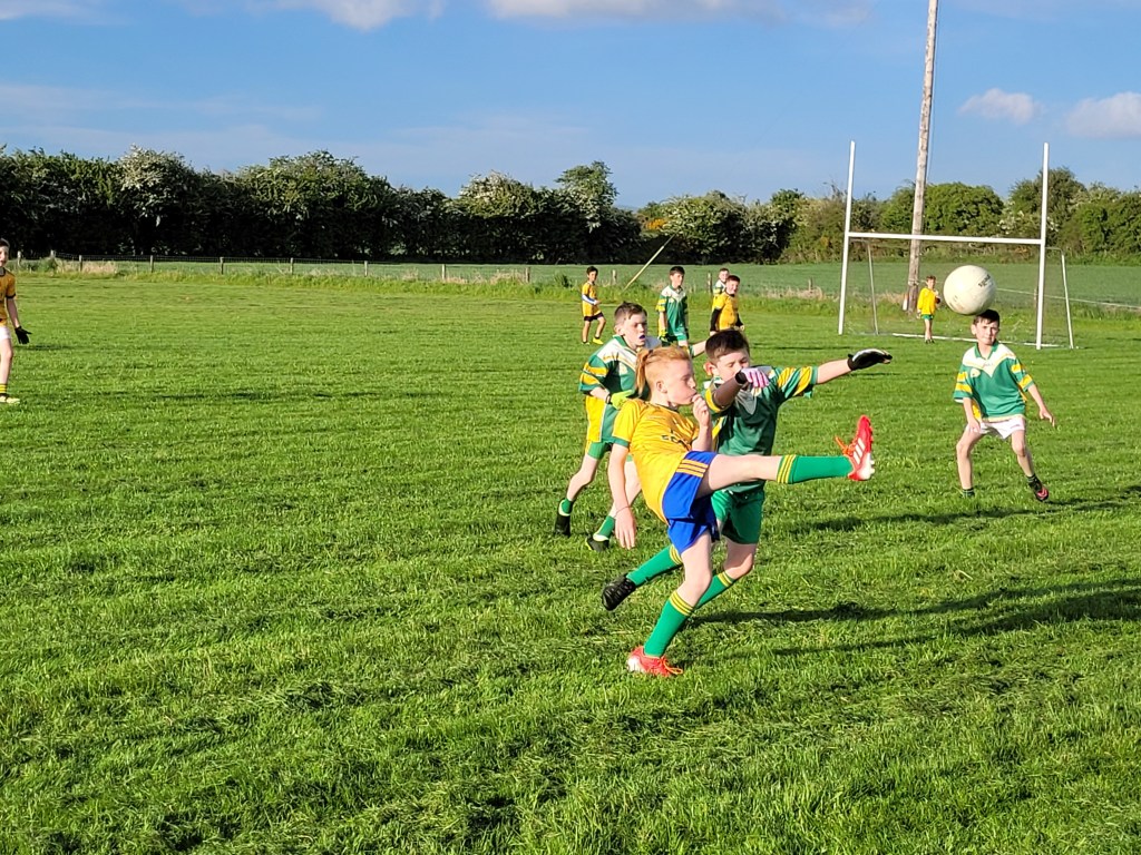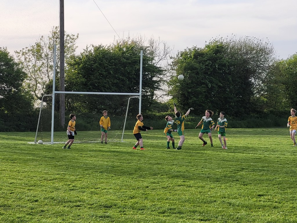 Ballymore U11’s hosted Dunlavin for a challenge match on Monday evening. The visitors got off the mark first but Ballymore replied with three in a row. Dunlavin were pressing hard and getting stronger as the half progressed. Despite valiant efforts in defence Ballymore were well behind by the time the half time whistle went.