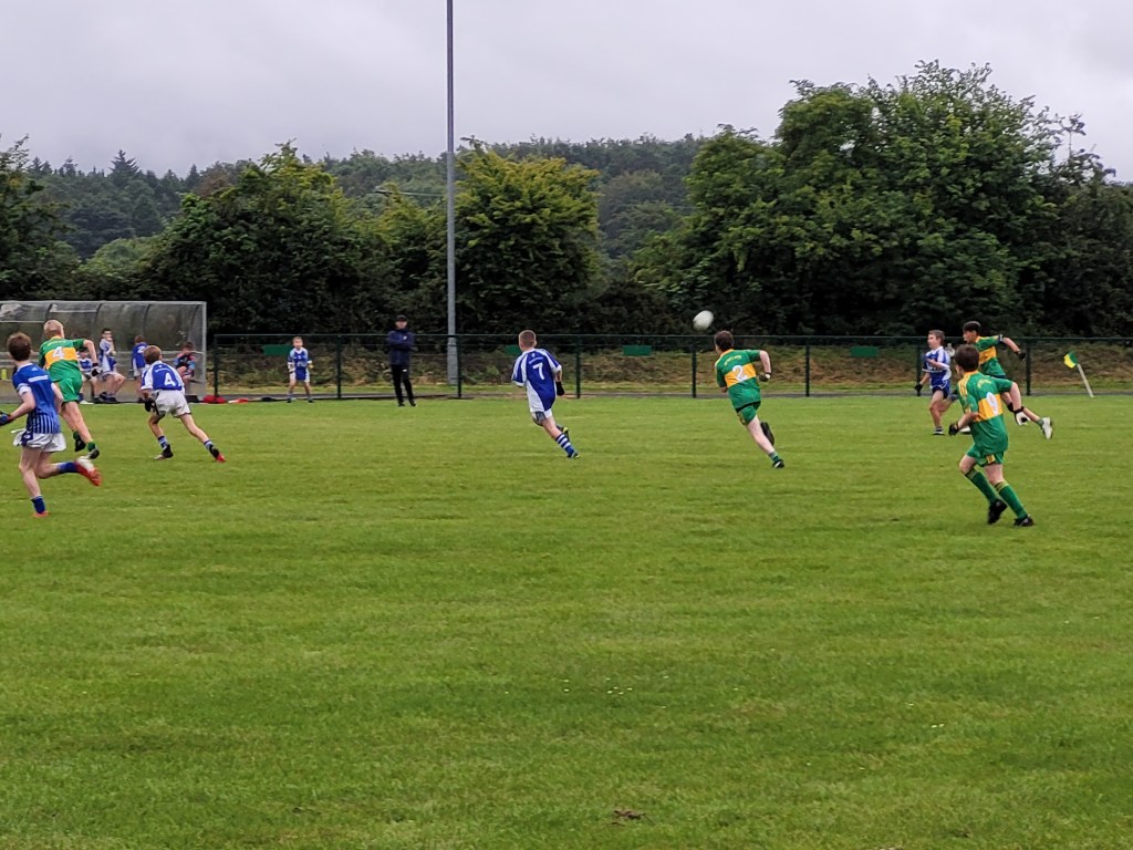 Ballymore hosted Monasterevin for their first game of the u12 league. The visitors went on the attack first but were stymied by the Ballymore defence who then counter-attacked quickly but couldn’t convert. Monasterevin managed to get two quick goals followed by Ballymore forcing the monasterevin keeper into a great save and putting the ball over the bar in the process. Monasterevin were the stronger team but some fine saves by Evan Haslam midway through the first half kept Ballymore in the game. Ballymore scored a free near the end of the half but Monasterevin replied with a goal and a point to leave the half time score at 3.1 to 2 points in favour of the visitors.
