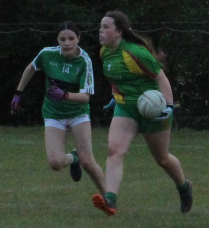 A talk with management rallied the Moorefield girls and a penalty was conceded by BME earning Moorefield a goal. This sparked a return volley from the BME girls scoring an additional (2 – 01) before another point from Moorefield. The last score from BME was a goal giving them a (4 – 02) lead. A late surge from Moorefield put another (1 – 03) on the board however the BME girls had stretched their lead to get the win. Full time score – Moorefield (2 – 09), Ballymore – Eustace (5 – 08).