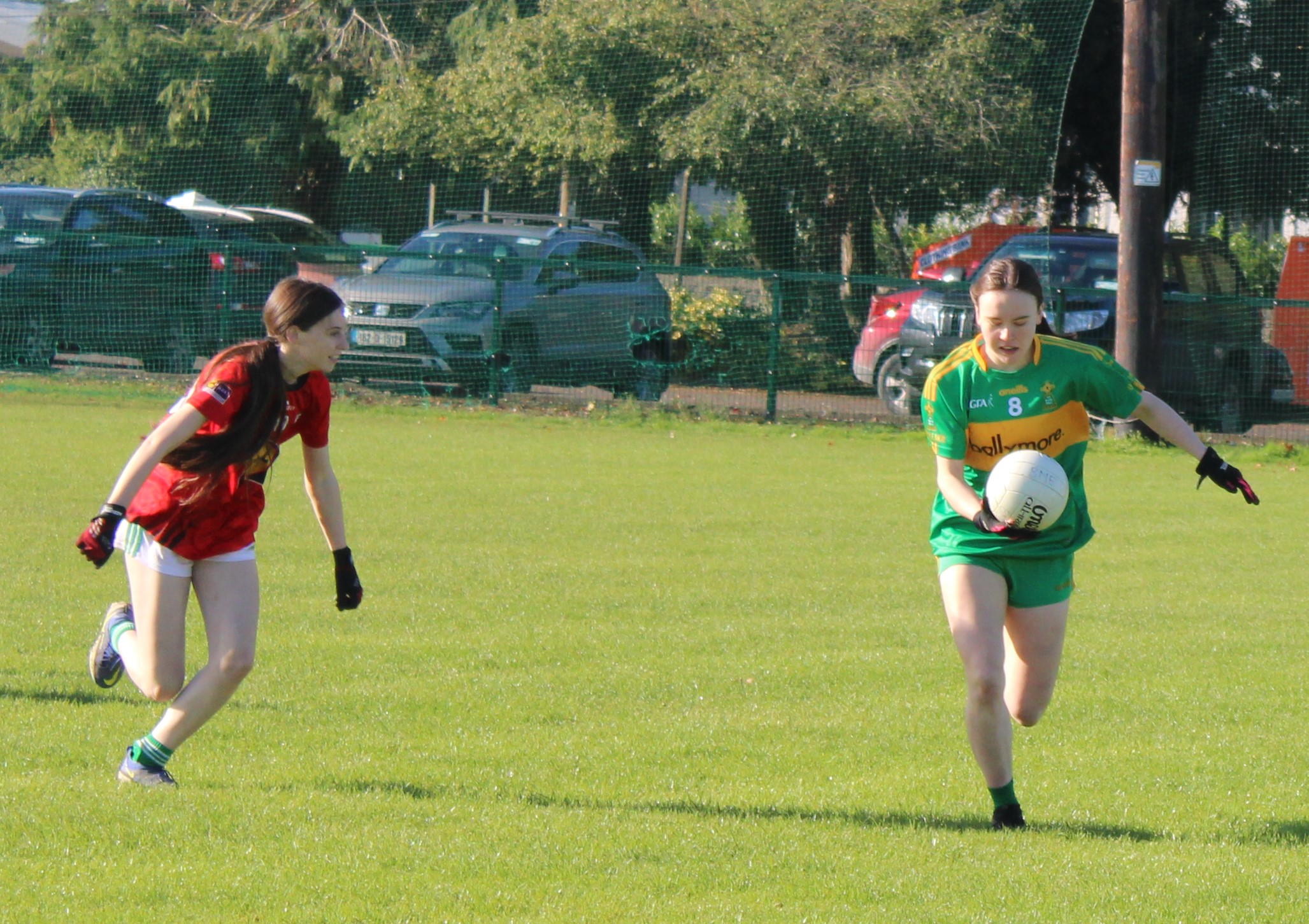 Ballymore Minors girls were away to Rathangan for the 2nd round of the league. Rathangan were first on the board with a point before BME returned with three scores in quick succession a goal and two points. The scores were tit for tat, four scores each, 4 points BME but 2- 02 for Rathangan bringing the teams level for first time in the match.
