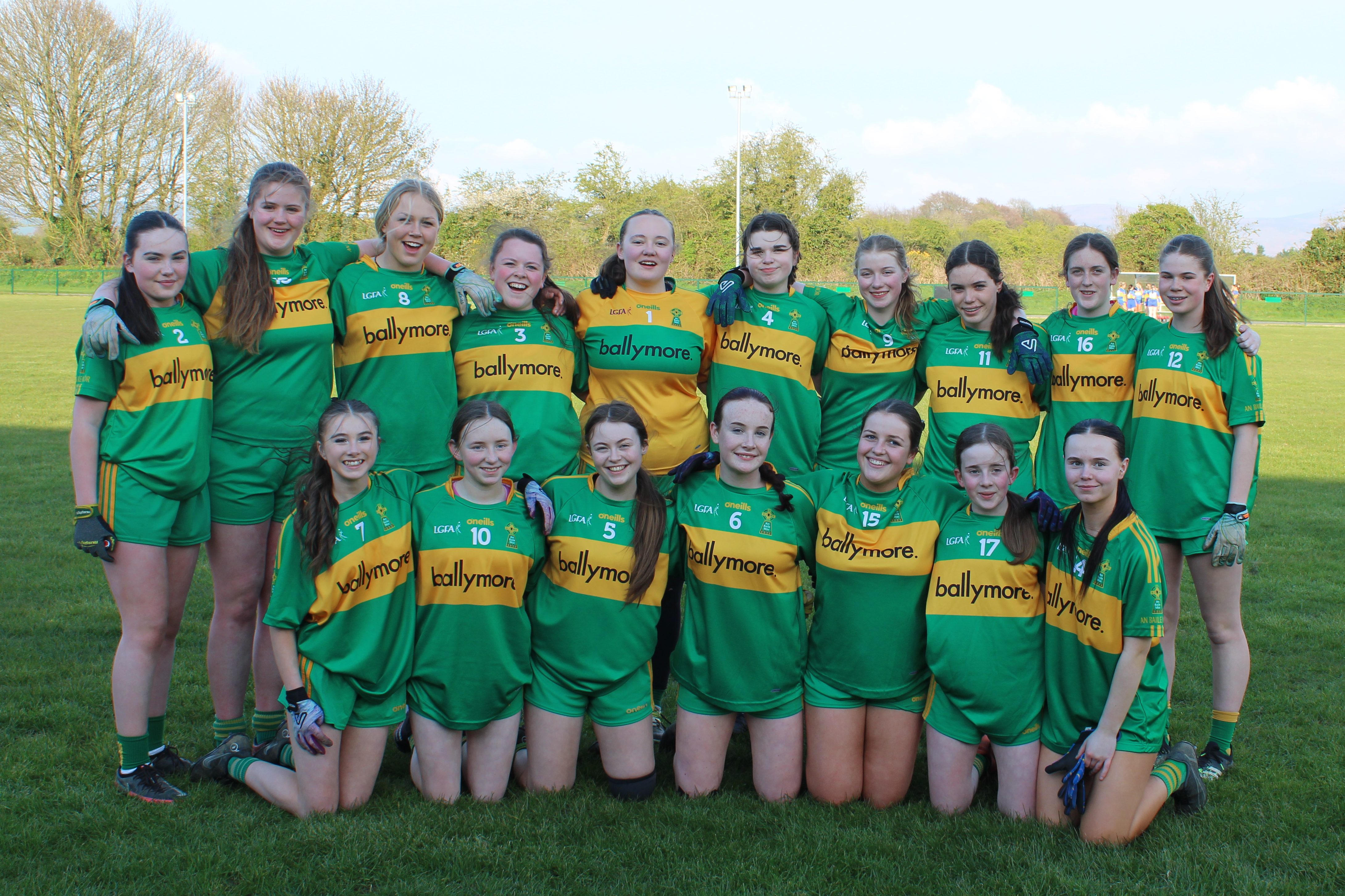 Foireann: G. Cowley, A. Fisher, A. Flaherty, A. Grace, E. McCann, L. CLohessy, A. Dowling, T. Keary (1 – 06), A. O’Neill, T. Gill, M. Crowe, L. Litton, S. O’Neill (0 – 01), E. Mooney (1 – 03), A. Flynn, K. Edwards, L. Conway