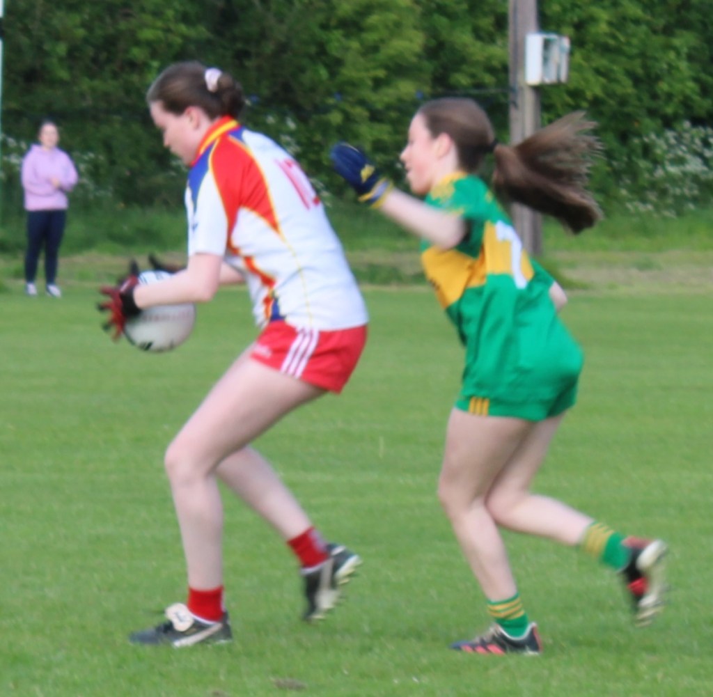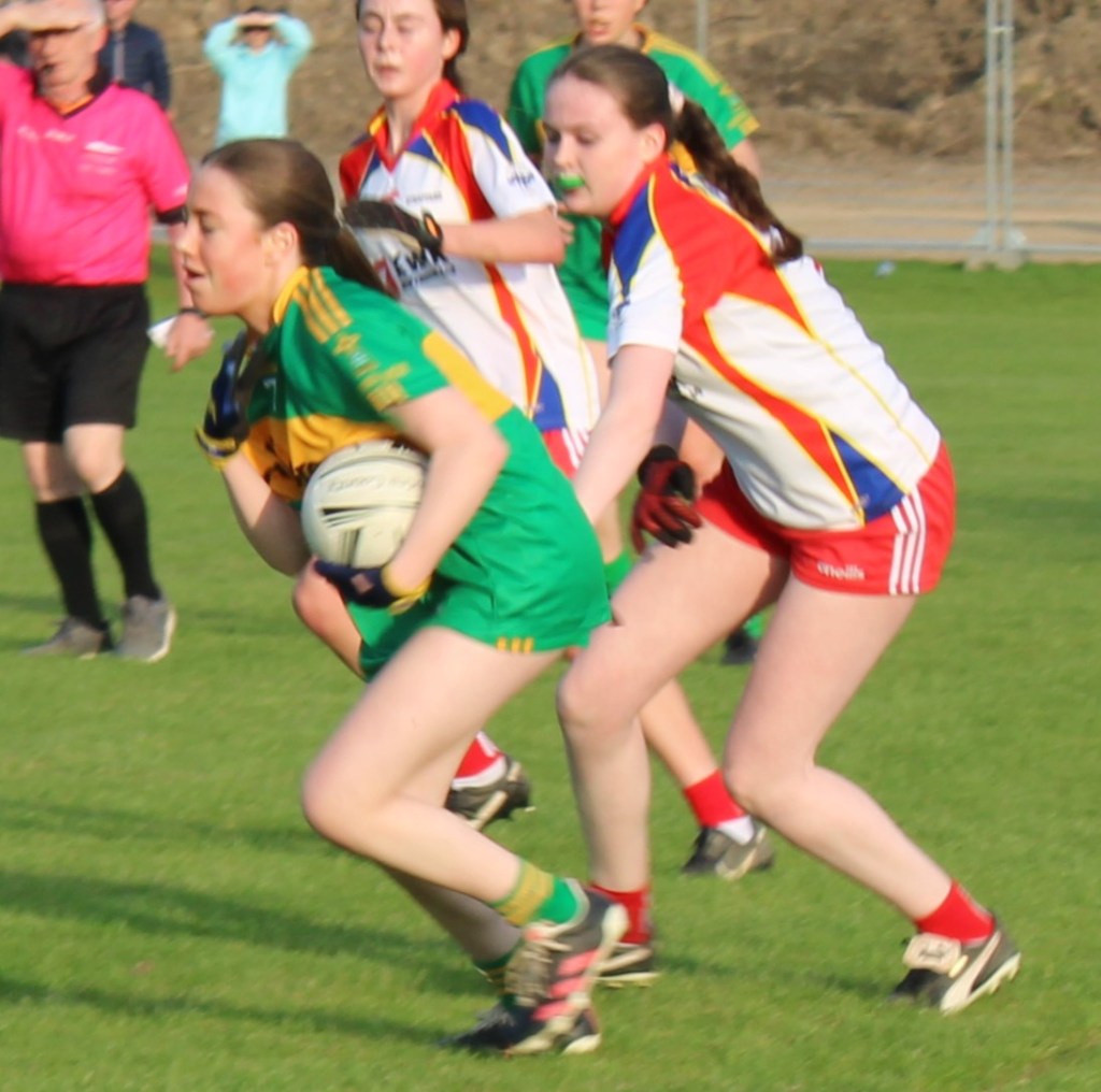 U17 girls’ fourth round was their first away game in Ardclough against Straffard. BME was first on the board with a point, and Strafford responded with one. The two teams traded points back and forth, bringing it 6 points to 5 for BME. Strafford started to pull away and scored (1 – 02), leaving the half-time score Straffard (1 – 07) to BME (0 – 6).