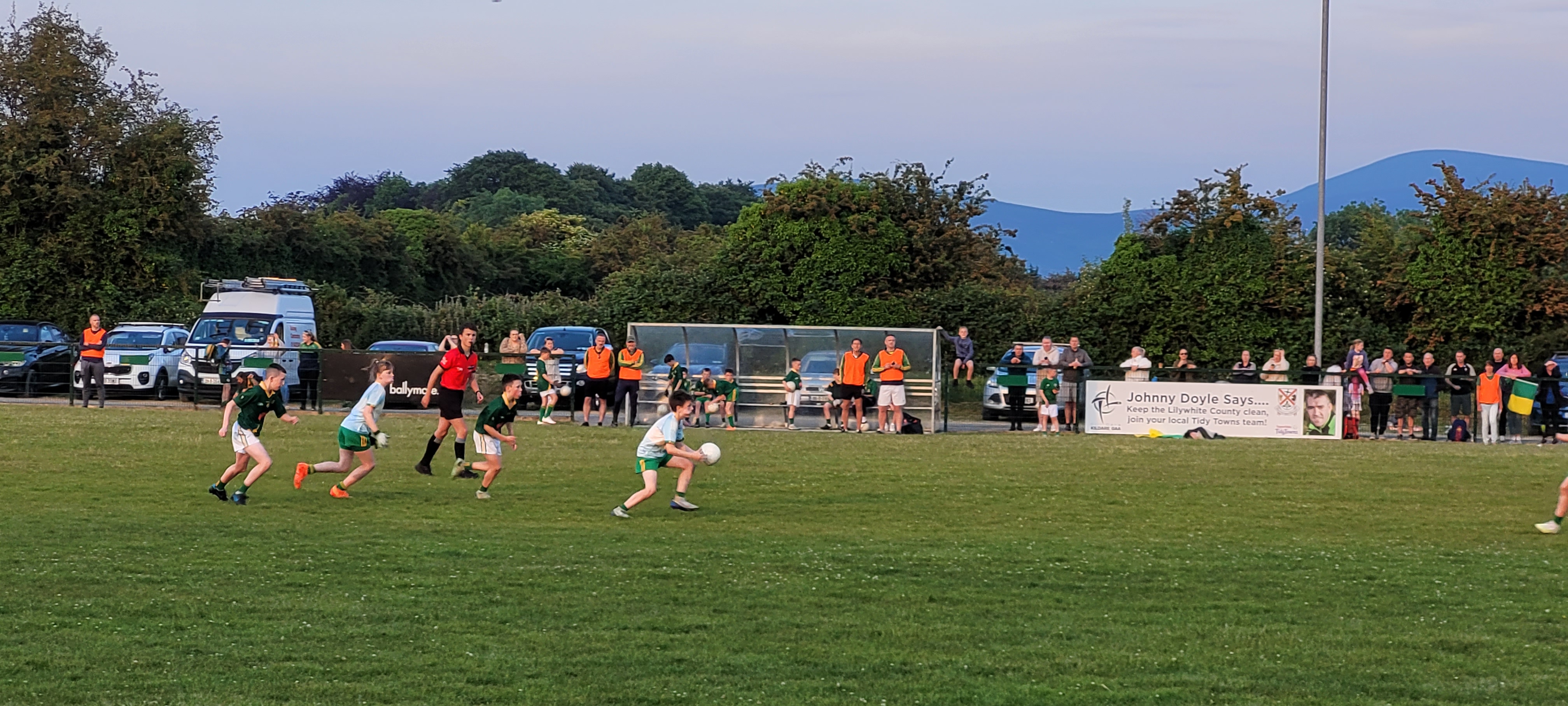 Ballymore Eustace was the venue for the Coiste na nÓg league finals. The opposition for Ballymore was Kill who had gone through their league campaign unbeaten with an average winning margin of 22 points so this was a daunting task for the home team. Kill raced into a two point lead before Ballymore pulled one back, the Kill keeper then pulled off a magnificent save with Ballymore scoring a point from the resulting 45. Kill pushed on again and scored a further goal and a point before Ballymore pulled back a point to stay in the game. Kill put over another two points before Ballymore found the back of the net to loud cheers from the Ballymore supporters. The teams traded further points before half time: BME 1.4 to Kill 1.6.