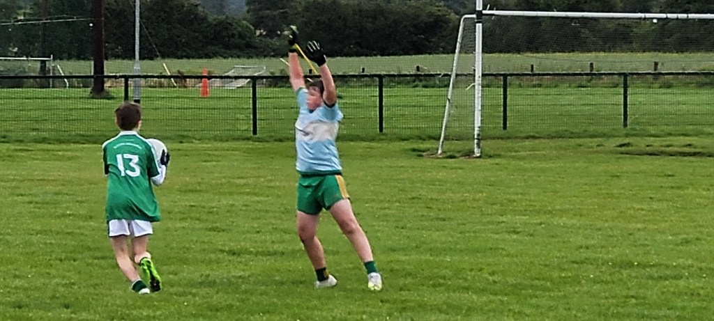 Ballymore managed to steady the ship at the beginning of the second half and started to ramp up the pressure on Moorefield. After a couple of good saves from the visiting goalie Ballymore got the opening point of the half. This spurred the hosts on and they got themselves level through two goals and a point. Another goal from Moorefield gave them the lead again and they stretched it with a further point. Ballymore were undaunted though and they levelled again with a goal and a point of their own. Ballymore had the momentum and they scored a fifth goal with an emphatic finish and topped this off with another point. With two minutes left Moorefield counterattacked and got a goal leaving them behind by one point. Then, with seconds to go, Moorefield were awarded a free in a good position and made no mistake putting the ball over the bar. That was the last score of the game with a draw probably a fair result.